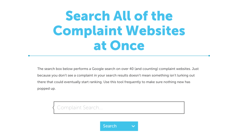 A tool you likely haven’t come across yet is Go Fish Digital’s Complaint Search Box.